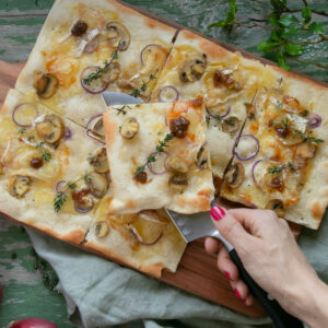 1. Flammkuchen à la française mit Camembert & Feigen Confit