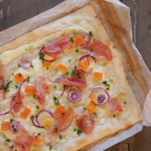 Kürbis und Rohschinken sind nicht nur in der Welt der Flammkuchen ein Traumpaar. Ausprobieren wärmstens empfohlen!